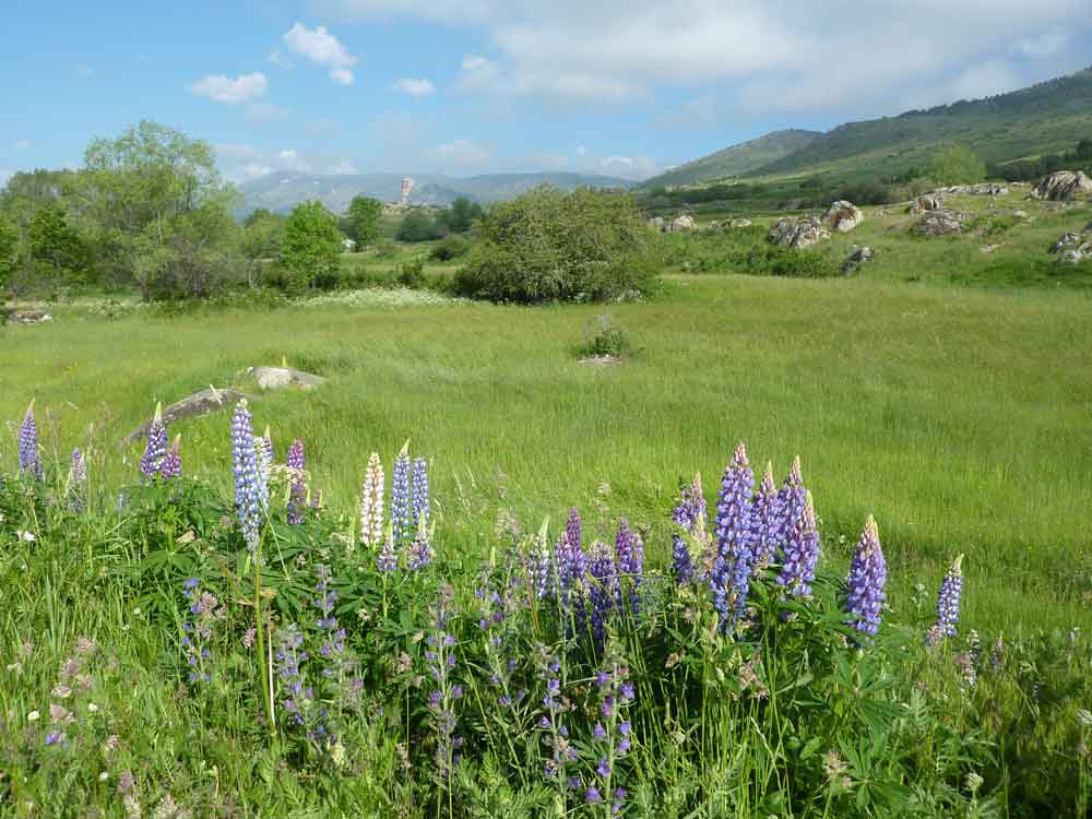 départ du camping La Griola à l'entrée de Targassonne, qui nous a gentiment autorisés à stationner pour quelques heures: nous repérons vite la tour Thémis!