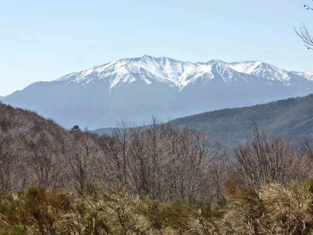 tout au fond, le massif du Canigou; on devine la vallée de la Castellane